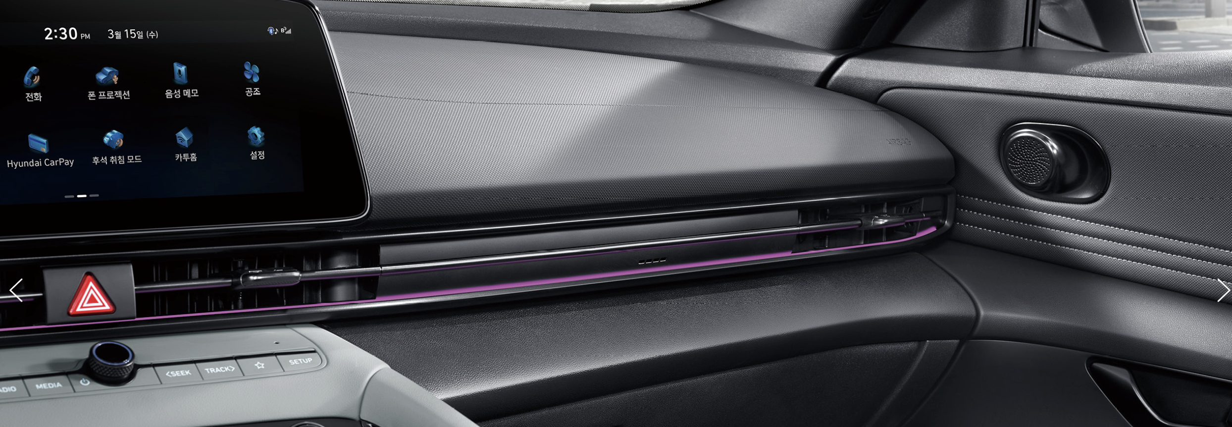 전 트림에 전자식 룸미러(ECM) 기본 적용, 모던 트림에는 하이패스, 2열 에어벤트까지 기본 제공되어 실내 편의성이 대폭 강화됐습니다.