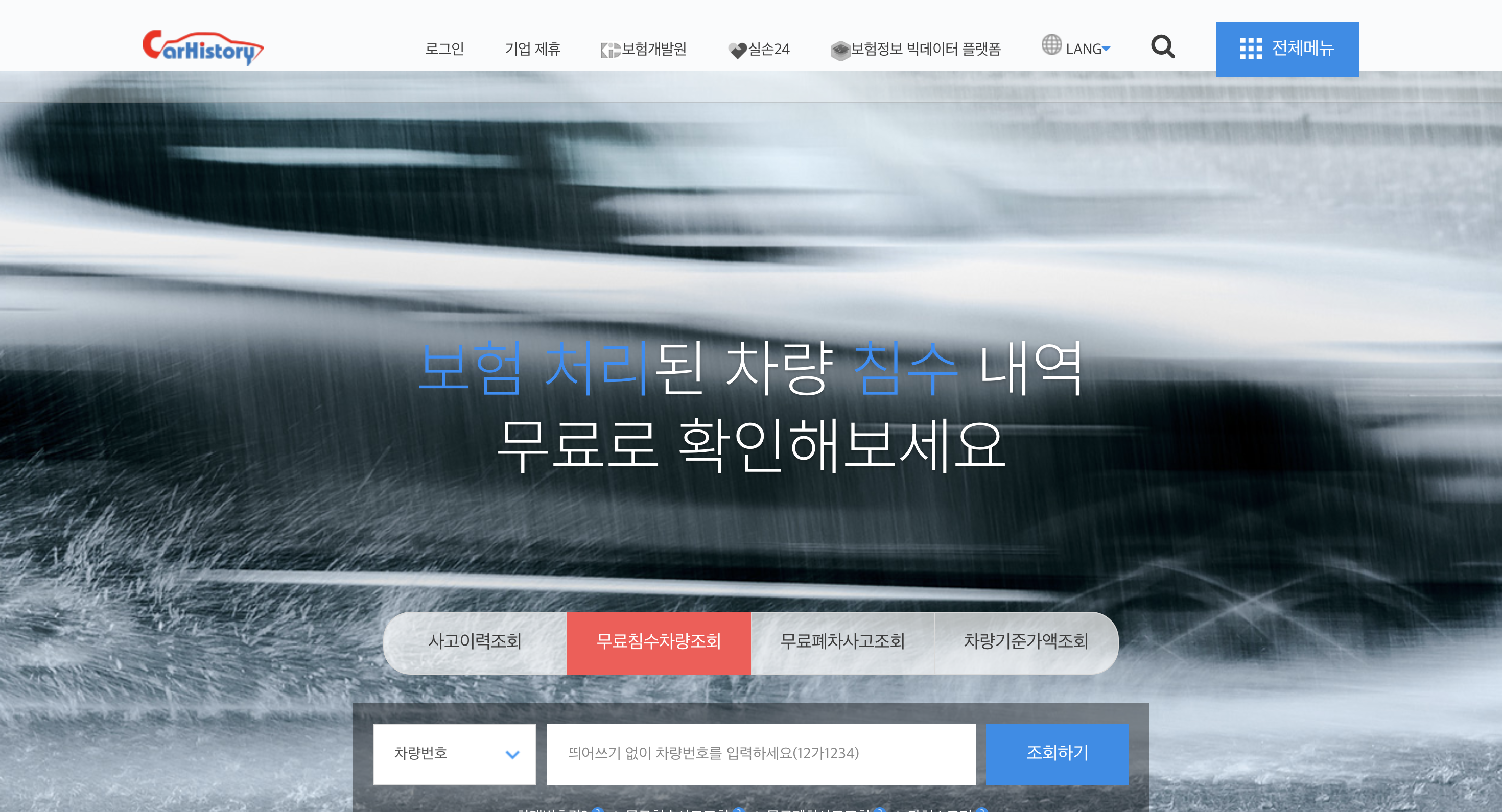 • 특징: 차량 번호 또는 차대번호 입력 시 보험 신고된 침수 이력을 간편하게 조회 가능