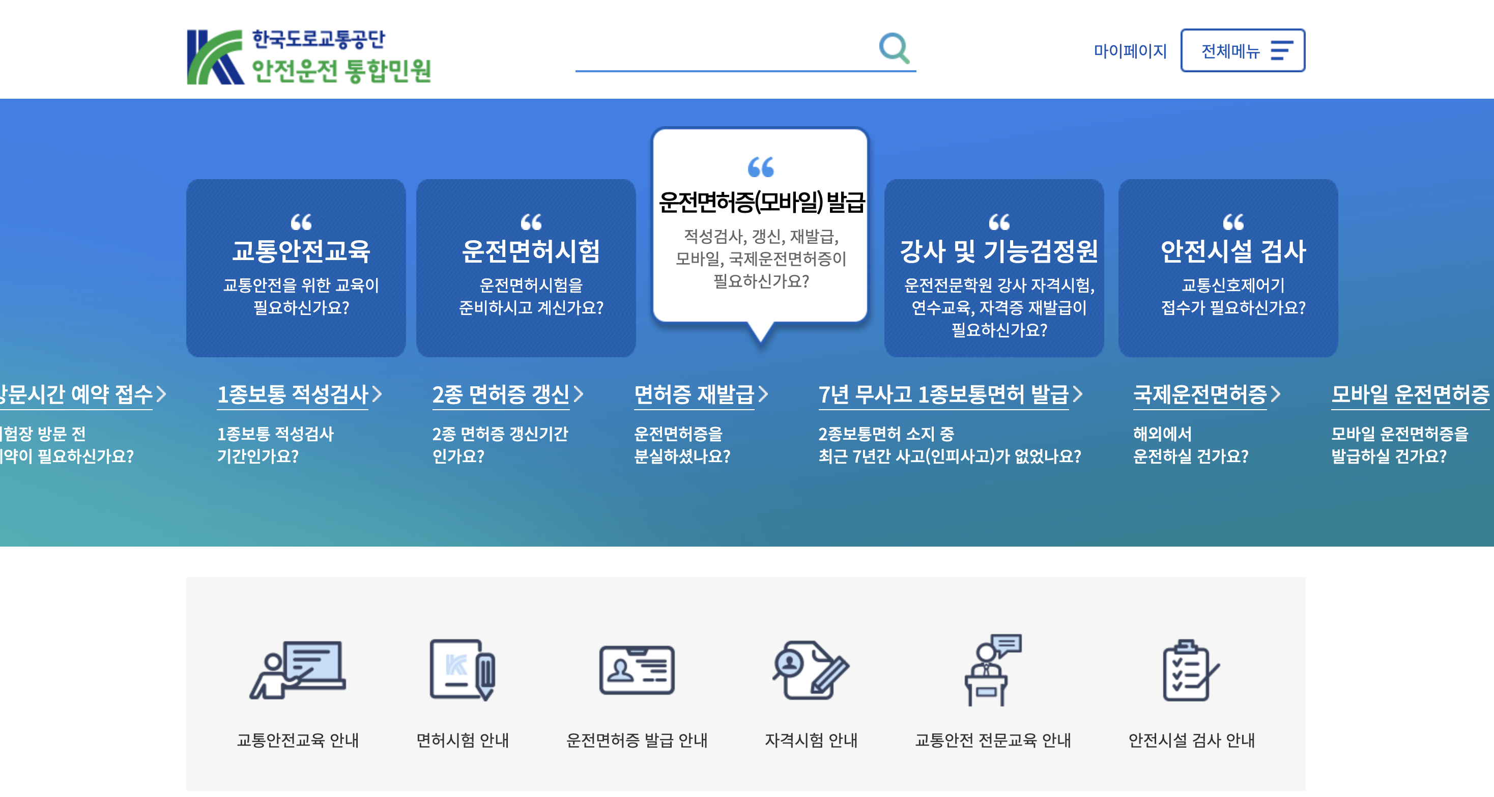 도로교통공단 안전운전 통합민원(e운전면허) 또는 정부24 접속
